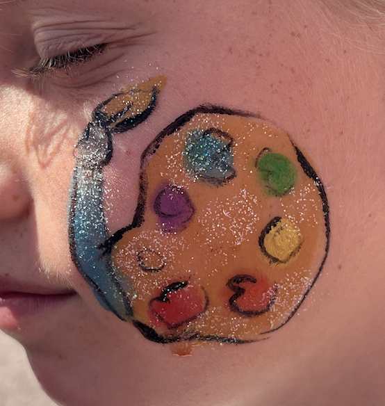 Face painting, Vermont themed prints and hand-dyed clothing and accessories